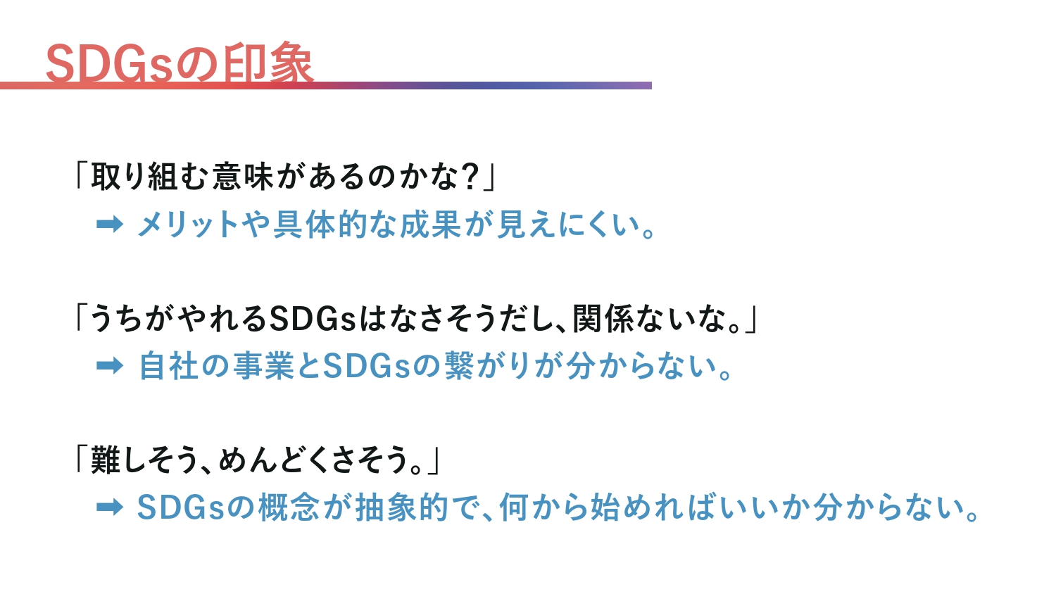 「SDGs、どちらにせよ絶対やらないといけないじゃん!」という気持ちになられたと思います。