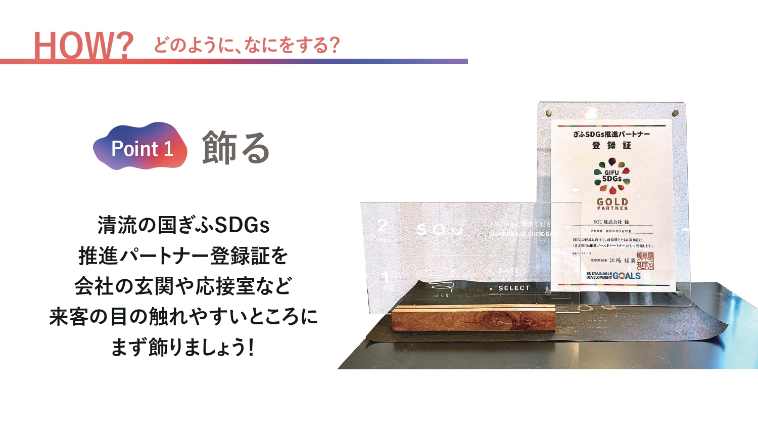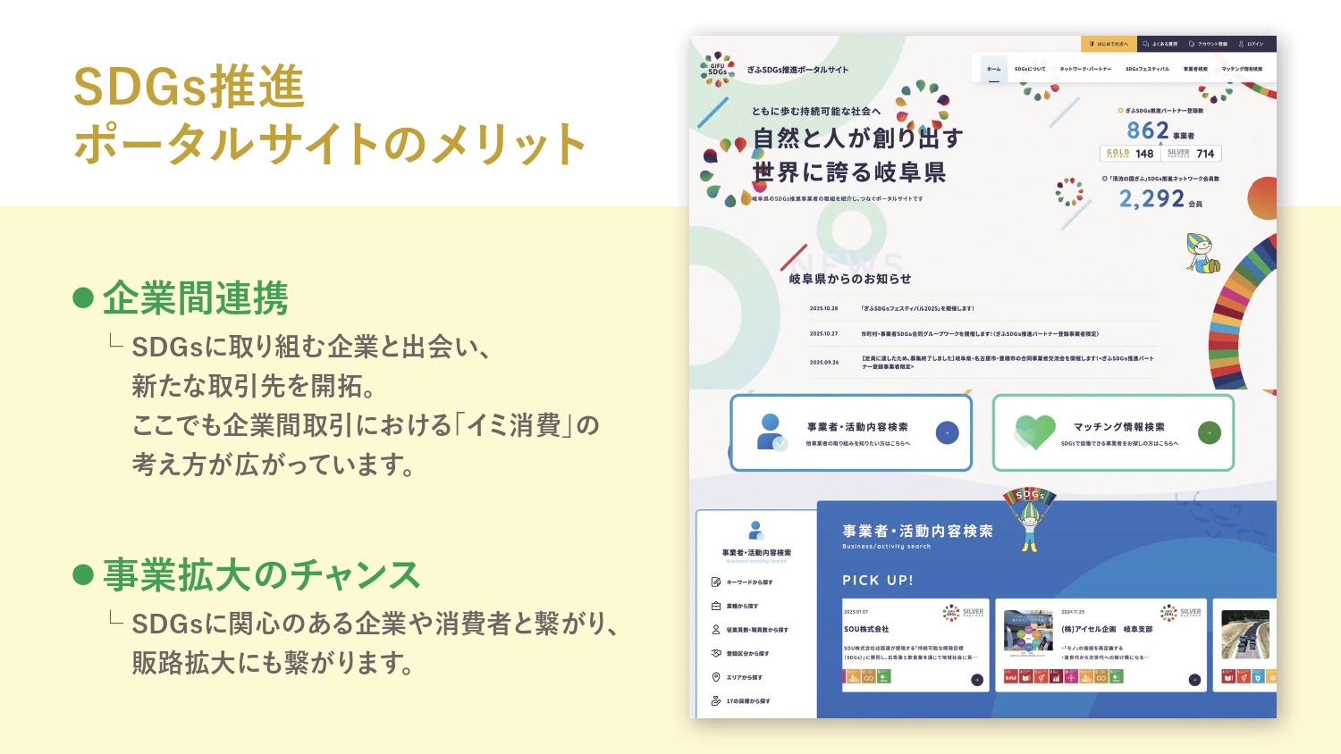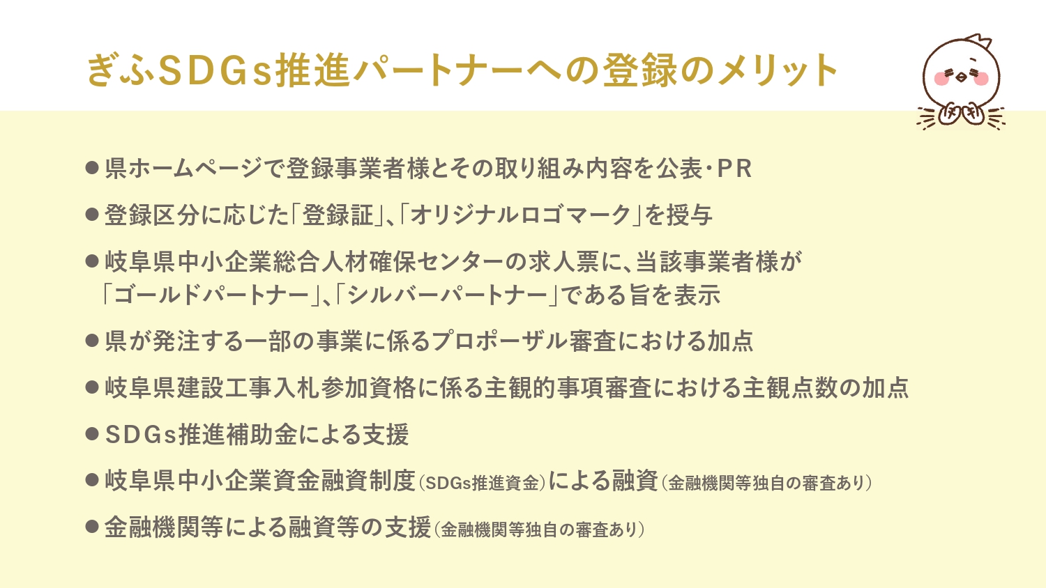 岐阜県では、SDGs推奨パートナーに登録されると、付帯のメリットもたくさんついてきます。