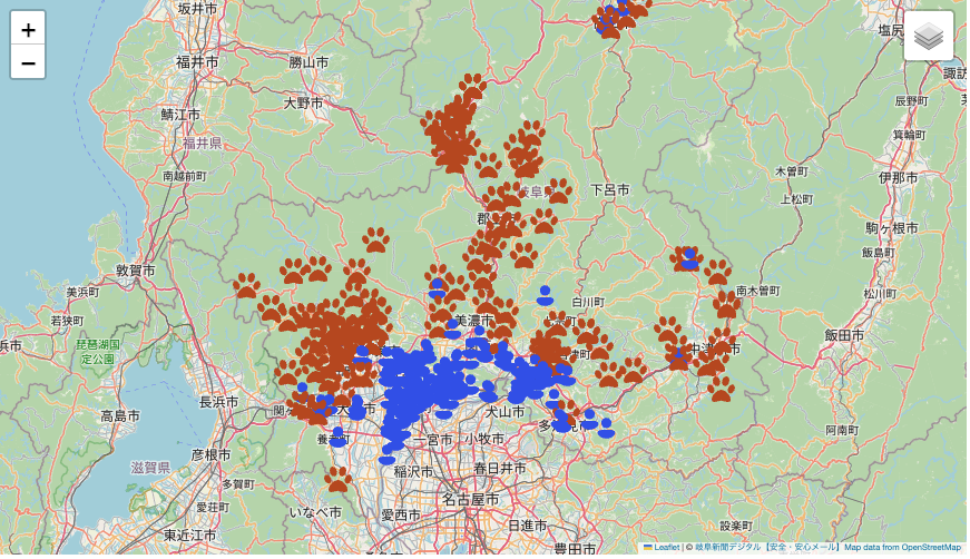 不審者の数が異常で、まるで岐阜市の不審者がクマの侵入を防いでくれているような地図になっており、